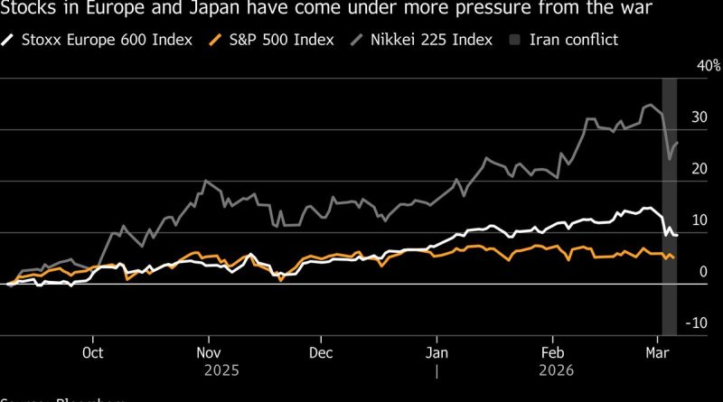 A prolonged Iran war is a risk to the bank-stock powered rallies in Japan and Europe as investors abandon these markets in favor of exposure to oil and the US dollar, Bank of America’s Michael Hartnett said.