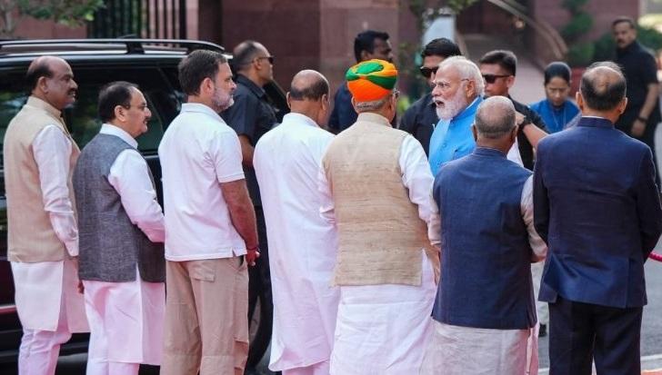 Indian Leaders Modi and Rahul Gandhi Share Brief Interaction at Mahatma Phule Event, Sparking National Interest